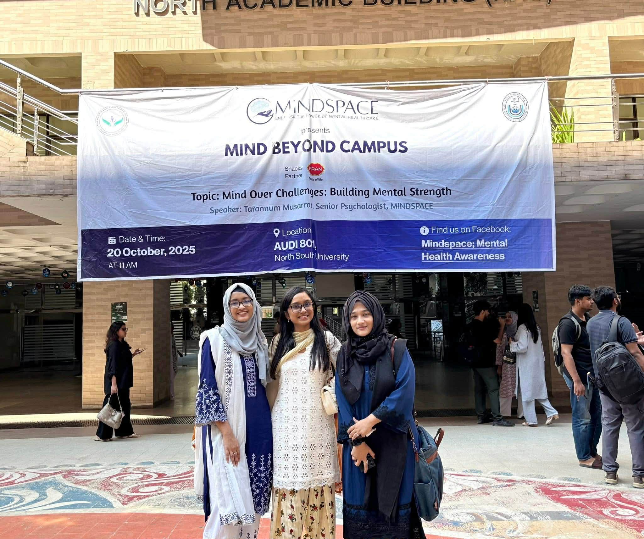 Mind Beyond Campus at North South University wrapped up beautifully! Students shared amazing feedback where they picked up new mental health tools, connected deeply during the discussions, and loved the guided meditation session! Big thanks to NSU Public Health and Science Club for having us, and to our snacks partner PRAN-RFL Group for keeping everyone fueled and happy.